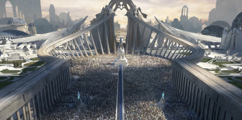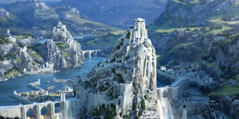 德玛西亚雄都以禁魔石————一种可以抑制魔法能量的白色岩石——为基,起初是符文战争之后为了躲避魔法侵害的人们所建立的庇护地。王权由中心向外辐射,守护着边远的城镇、农田、森林和矿产丰饶的山脉。